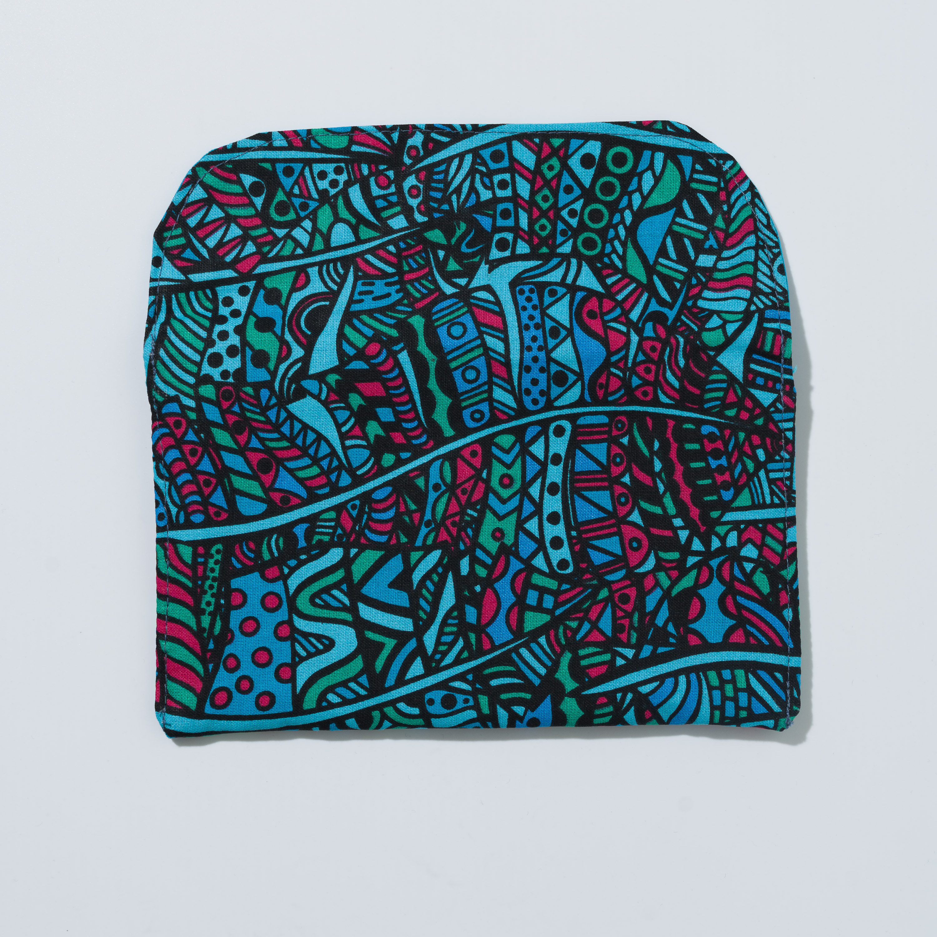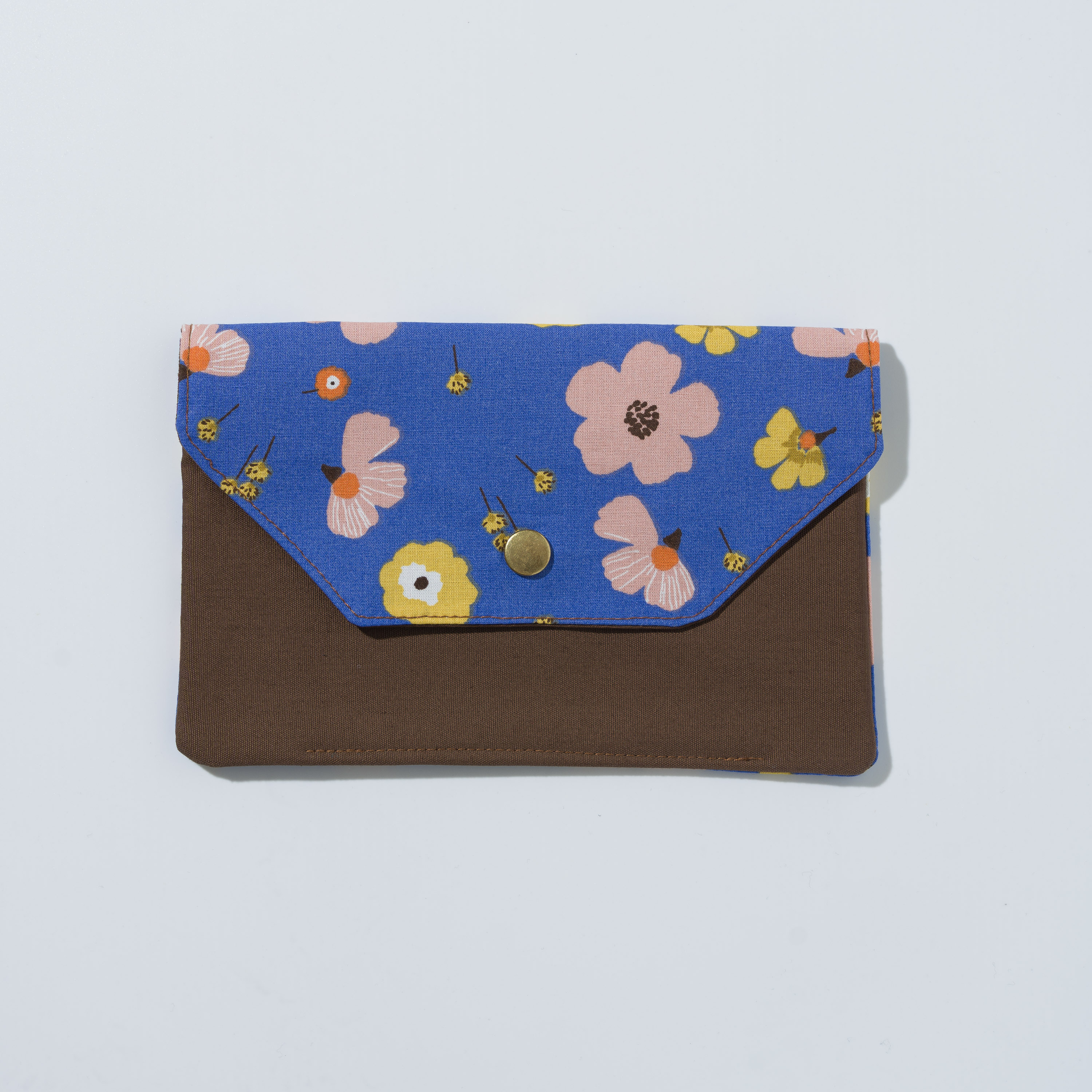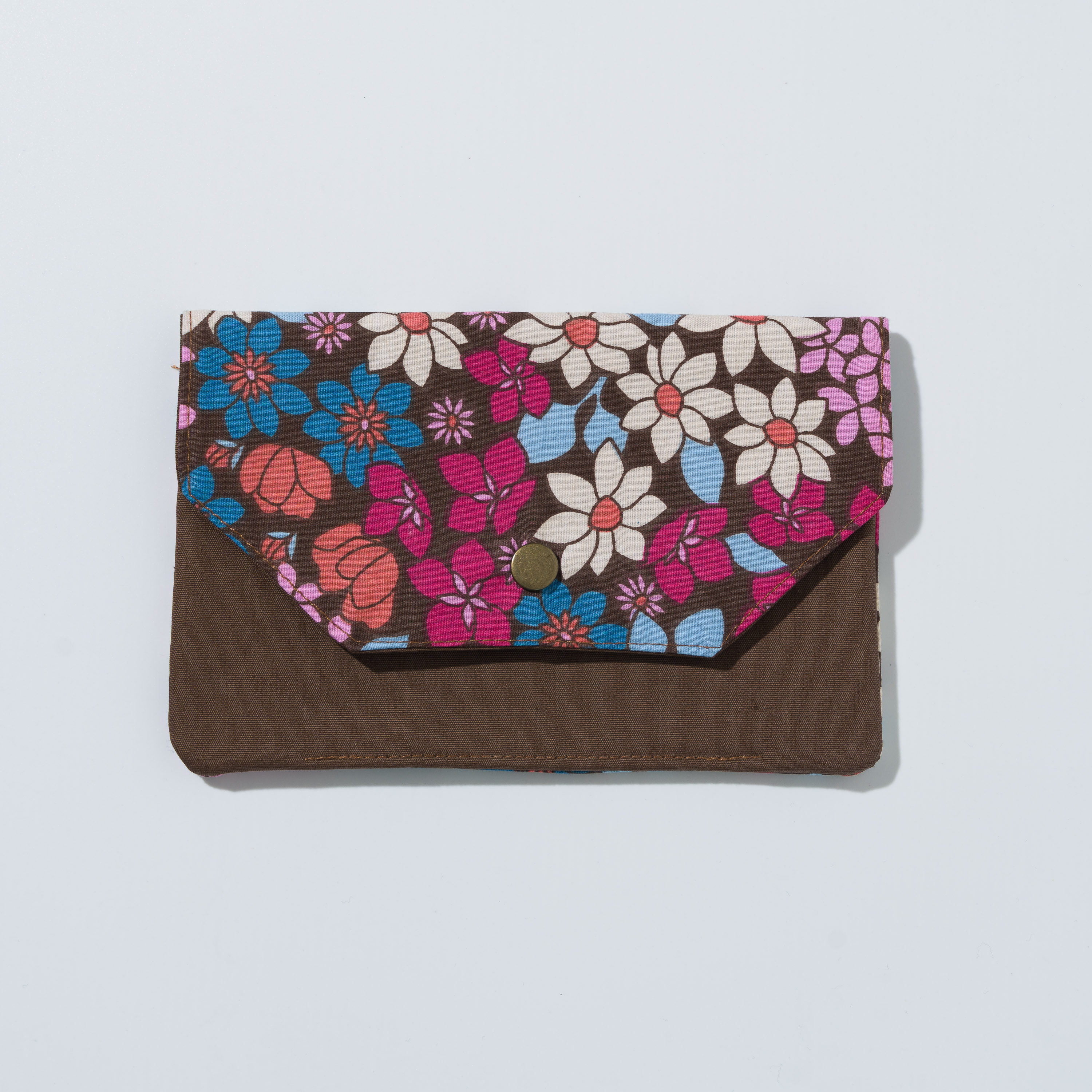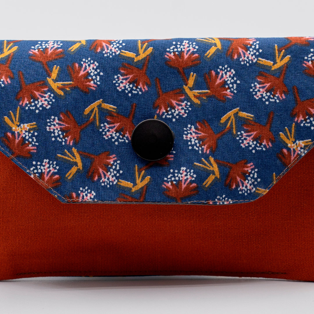 Portafoglio in tessuto taglia media, lavabile e pratico, con tasca con zip, portatessere e bottone in acciaio. Realizzato artigianalmente.