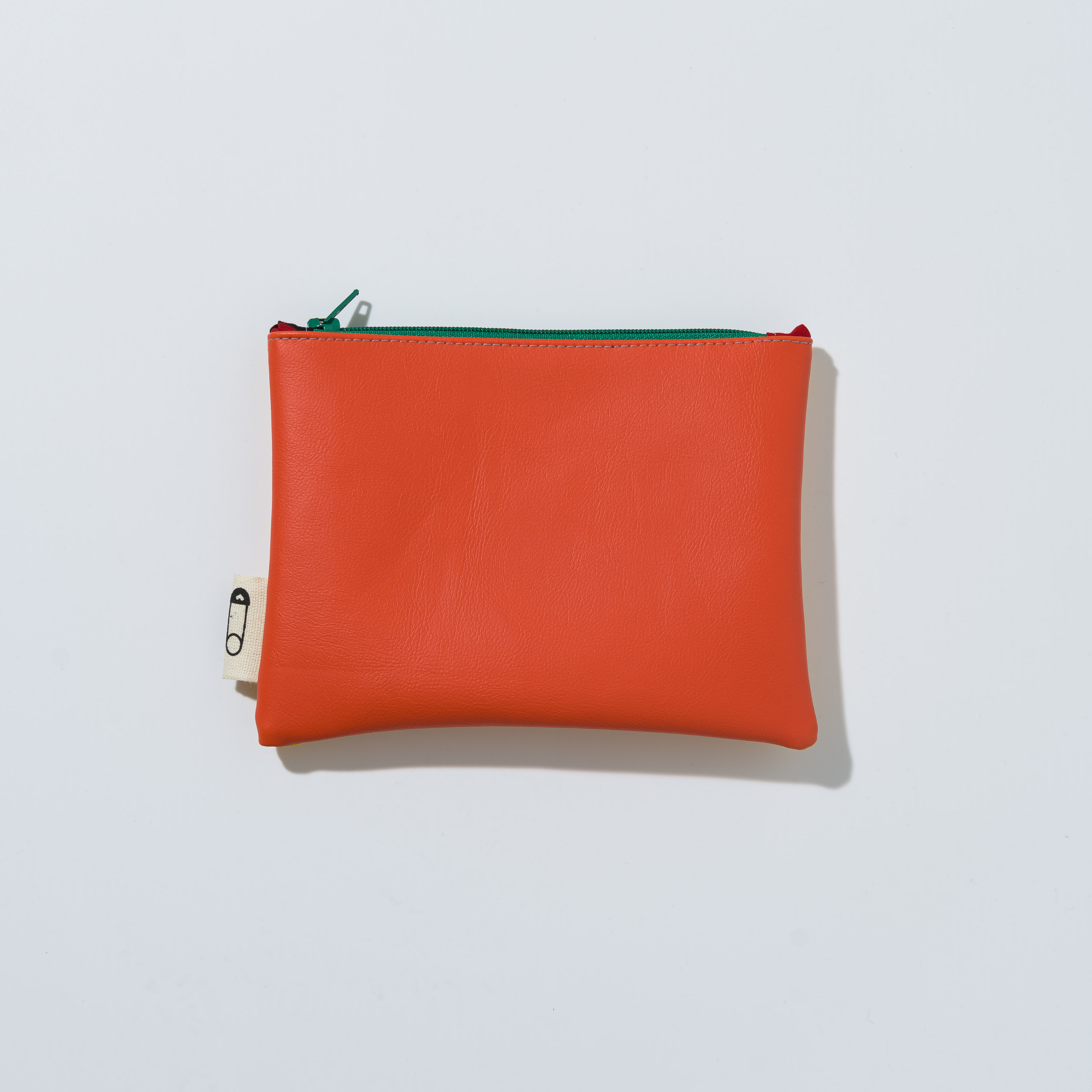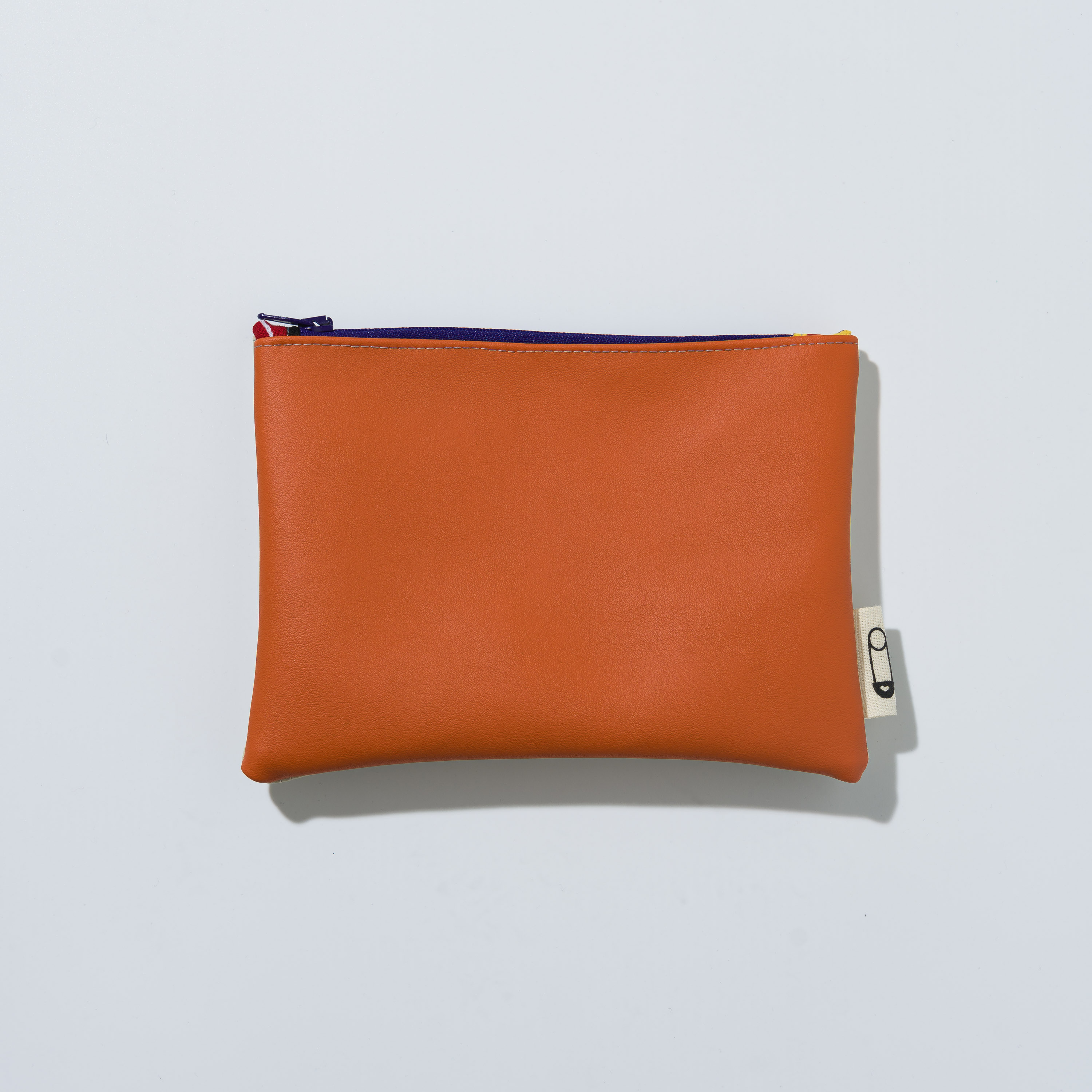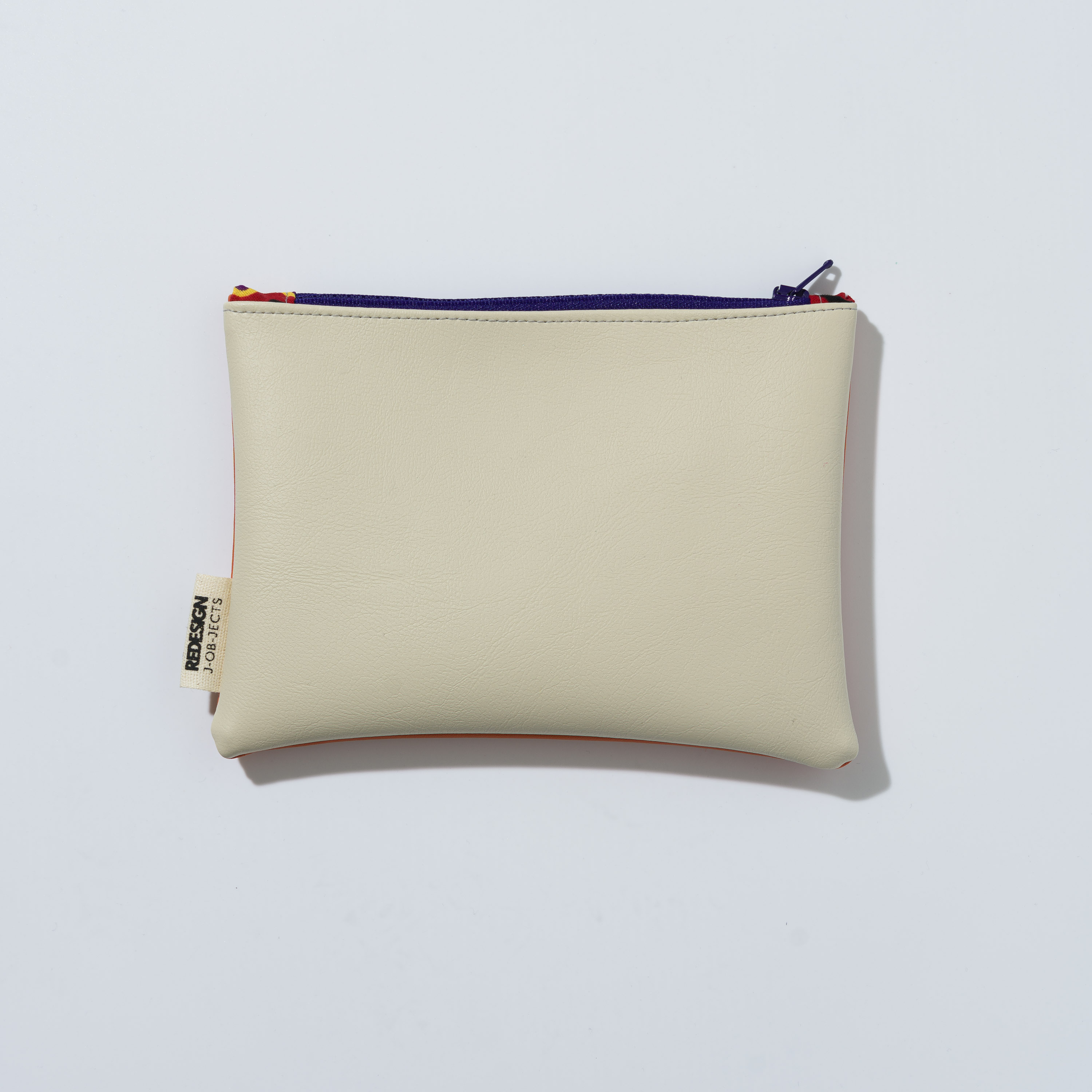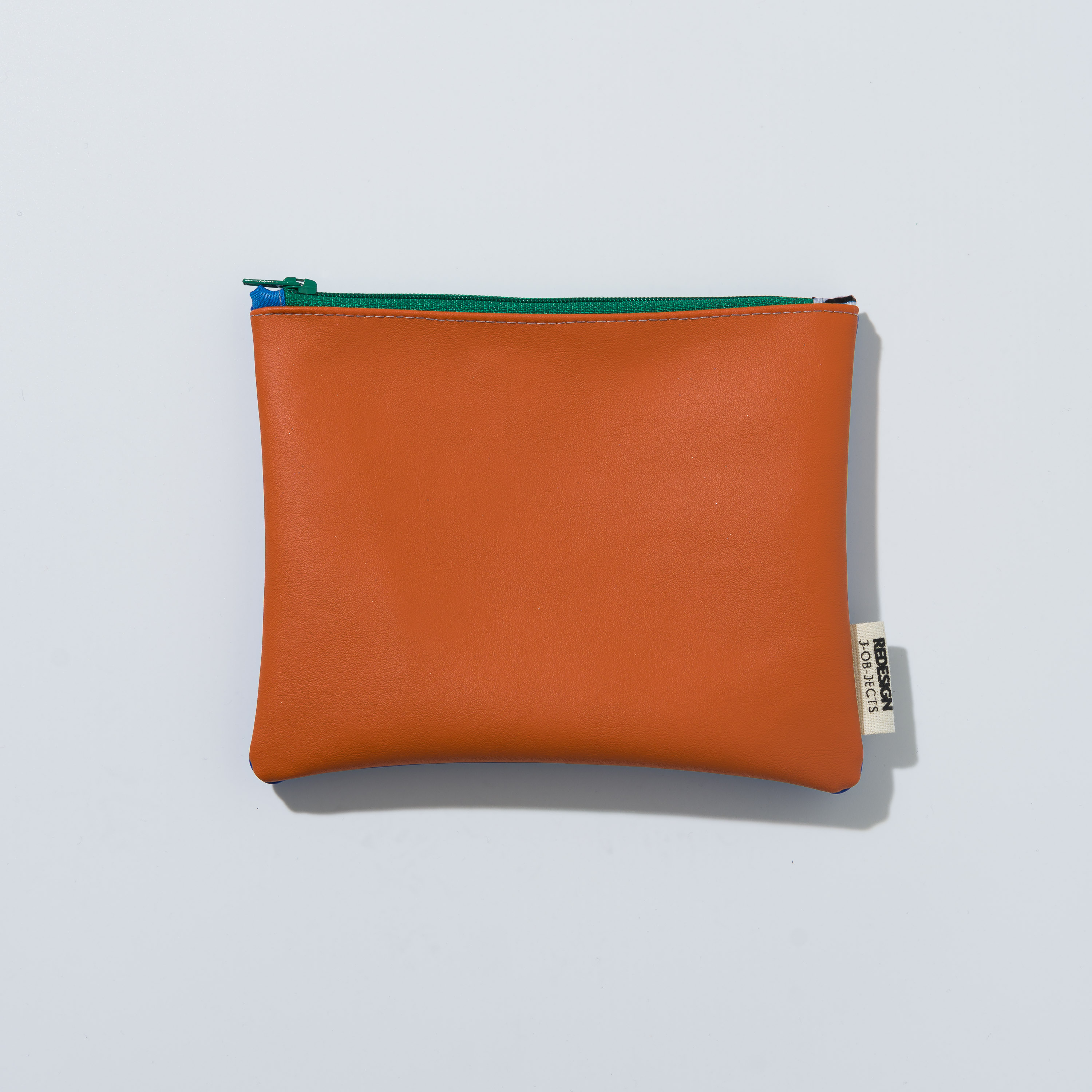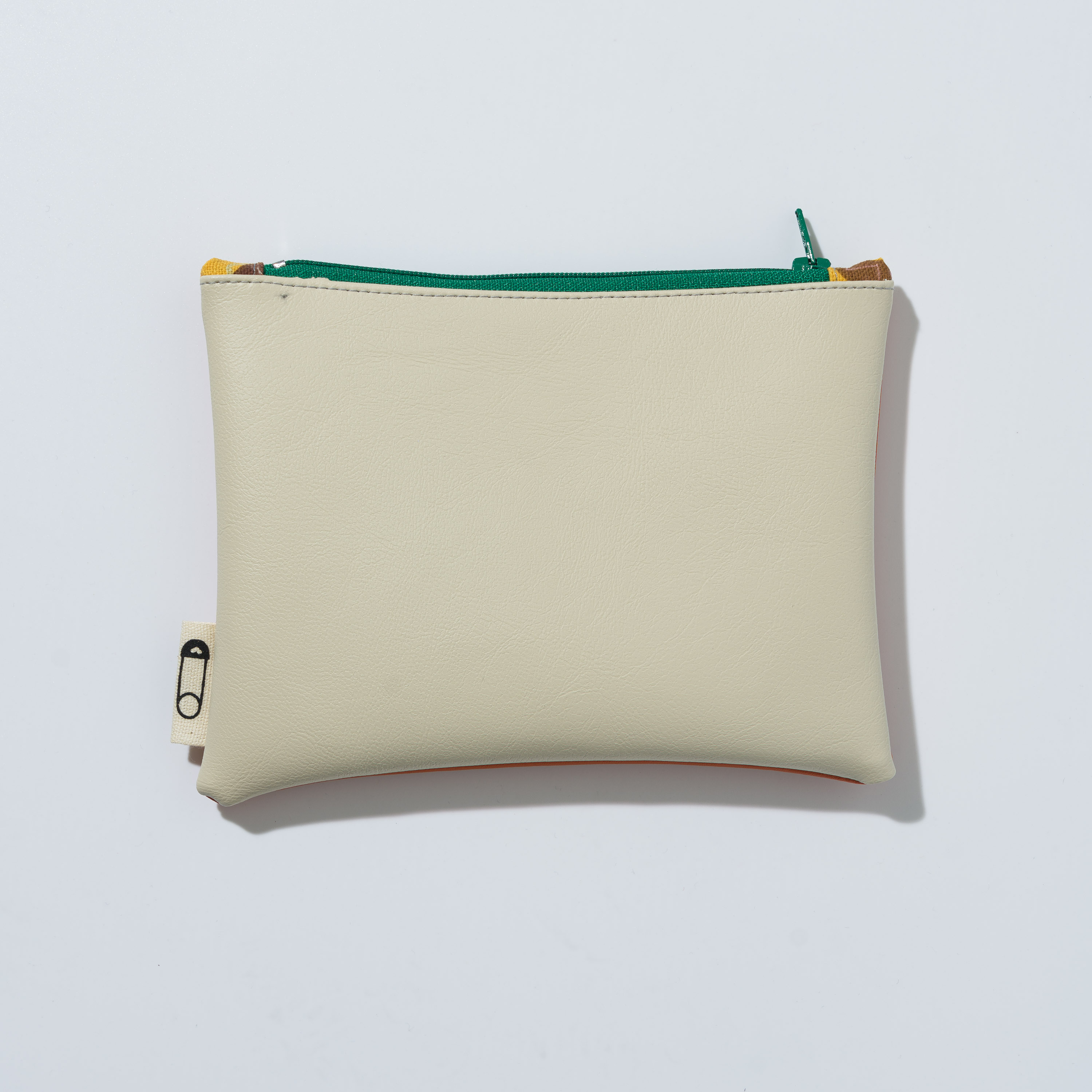 Astuccio da borsetta utile come porta oggetti, monete, medicine e/o portatelefono, con motivo bi-color in ecopelle e pratica zip. Realizzato con materiali di recupero. Non lavabile. Misure variabili indicative 16 cm x 14 cm