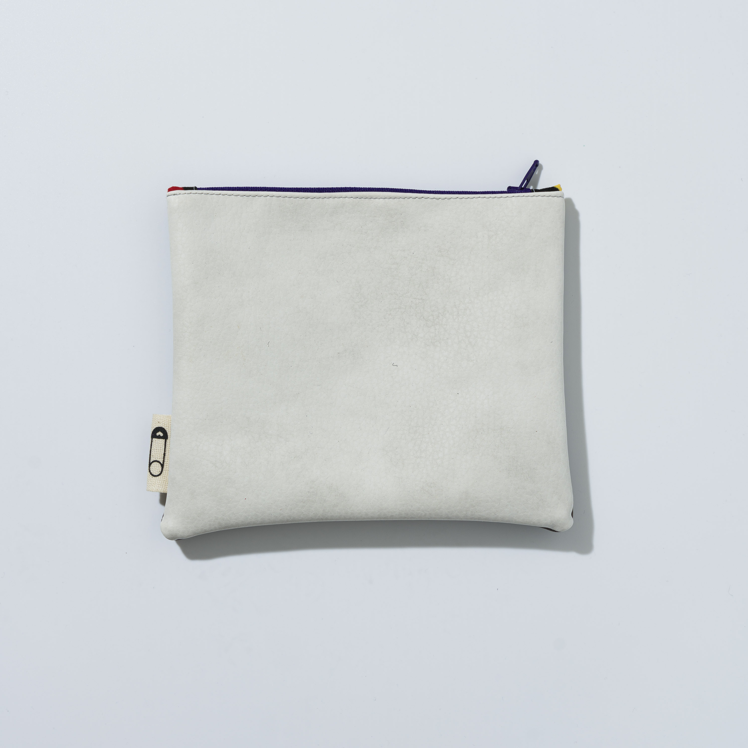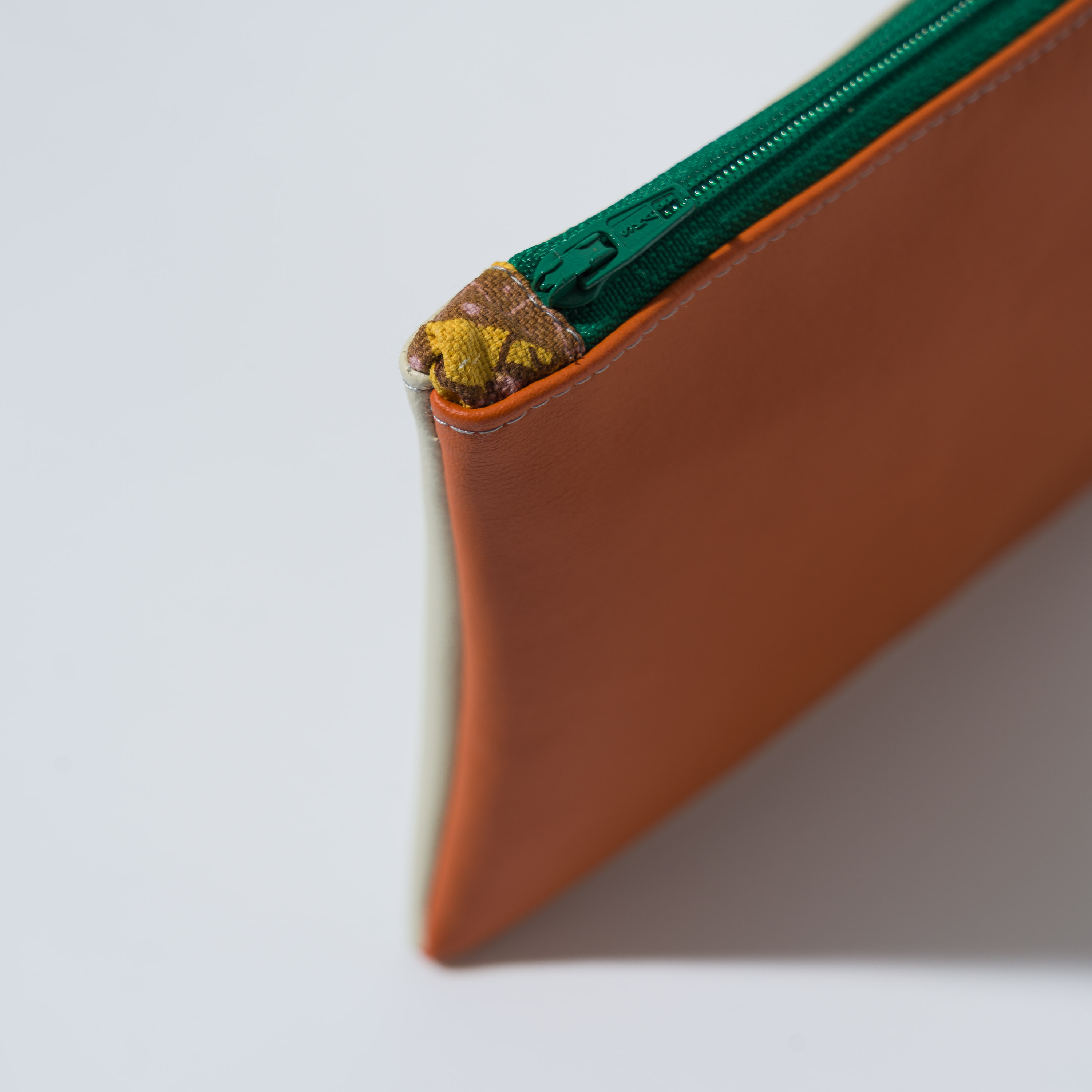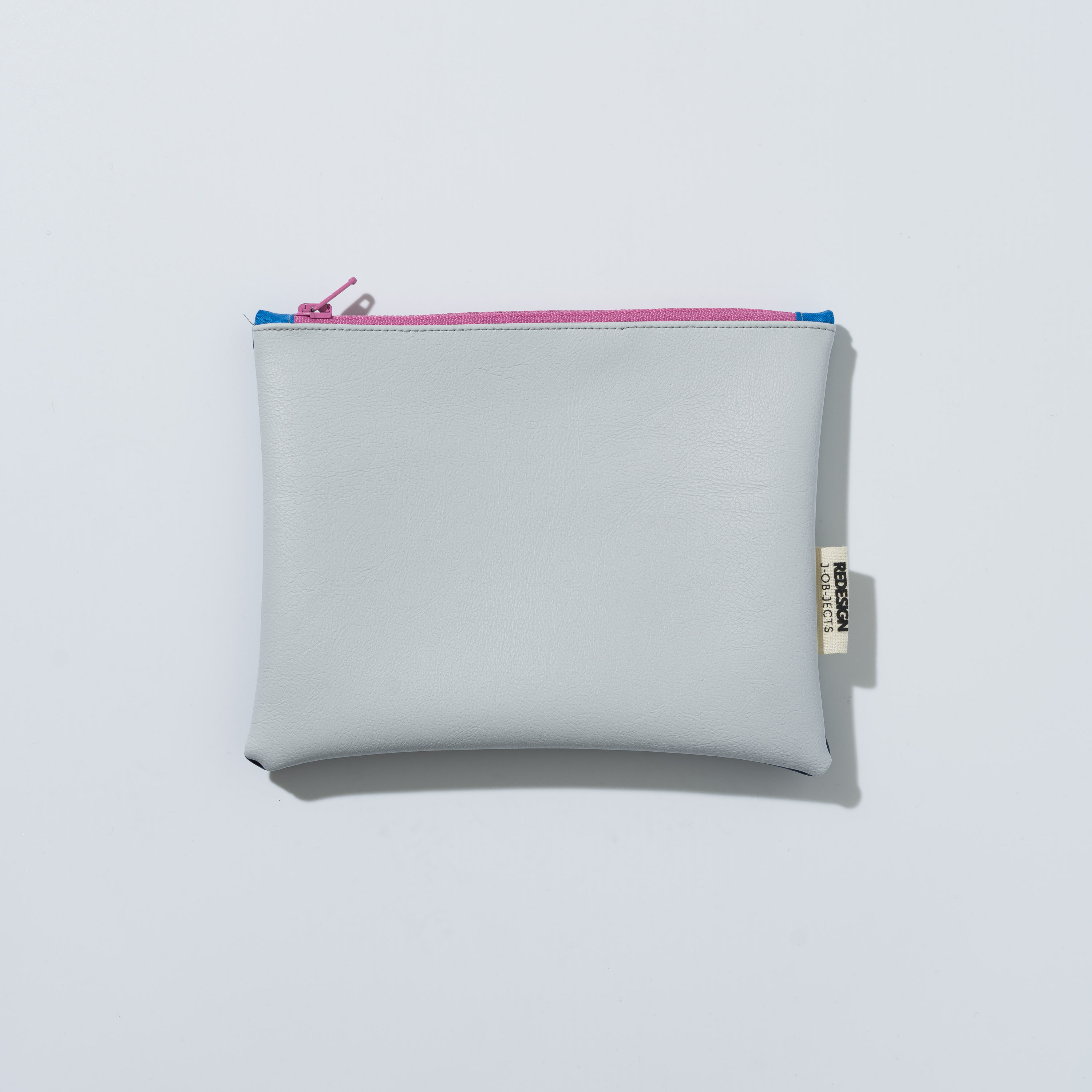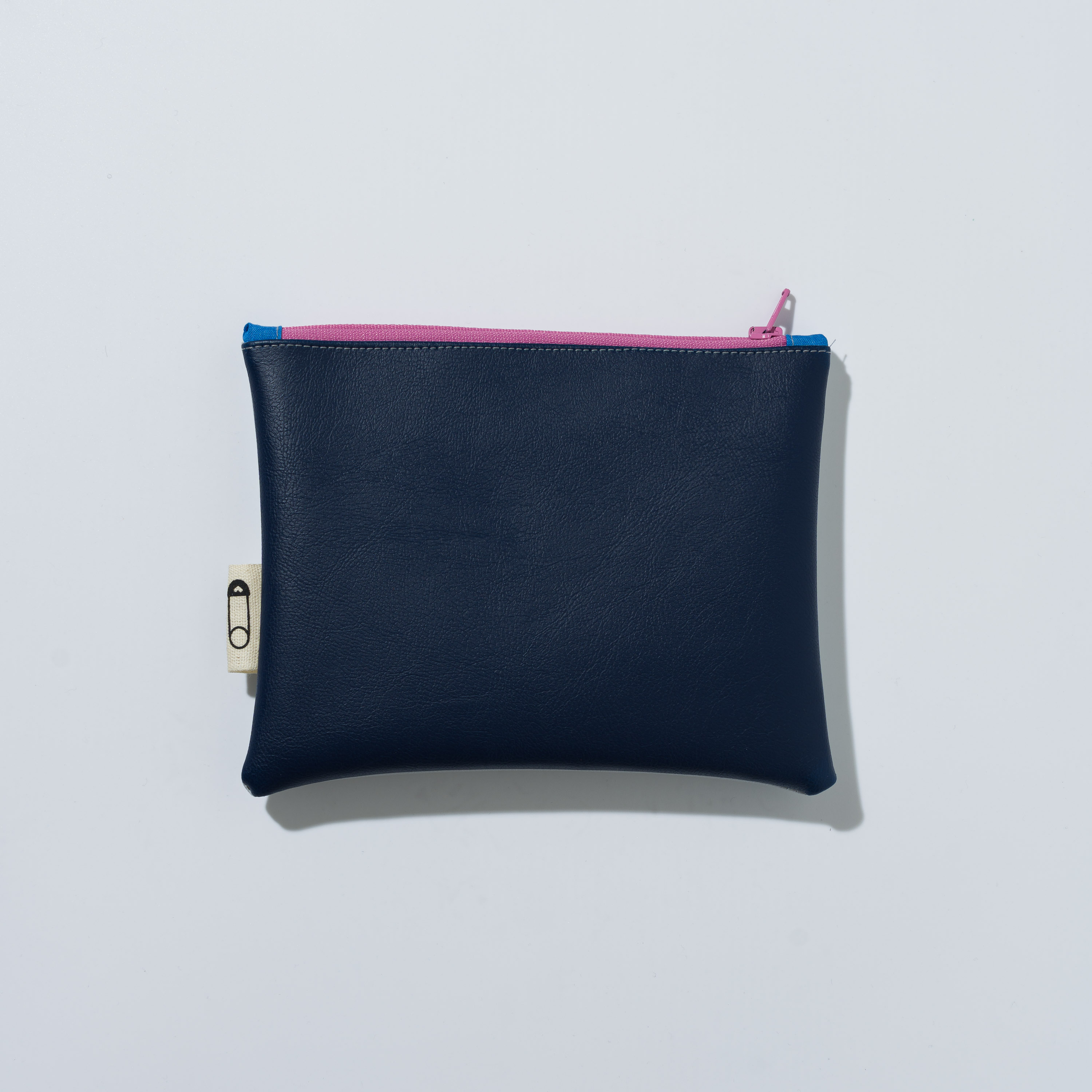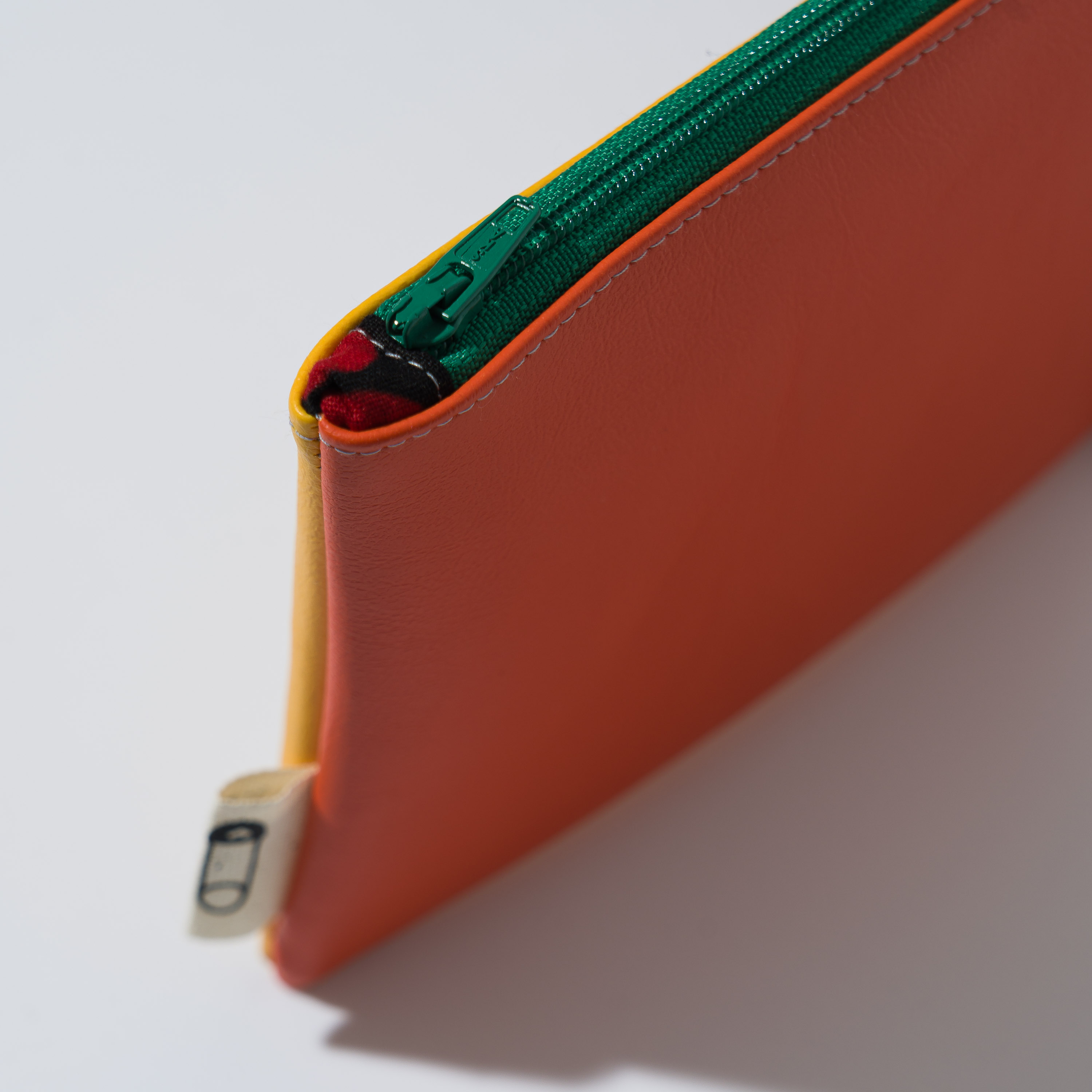Astuccio da borsetta utile come porta oggetti, monete, medicine e/o portatelefono, con motivo bi-color in ecopelle e pratica zip. Realizzato con materiali di recupero. Non lavabile. Misure variabili indicative 16 cm x 14 cm