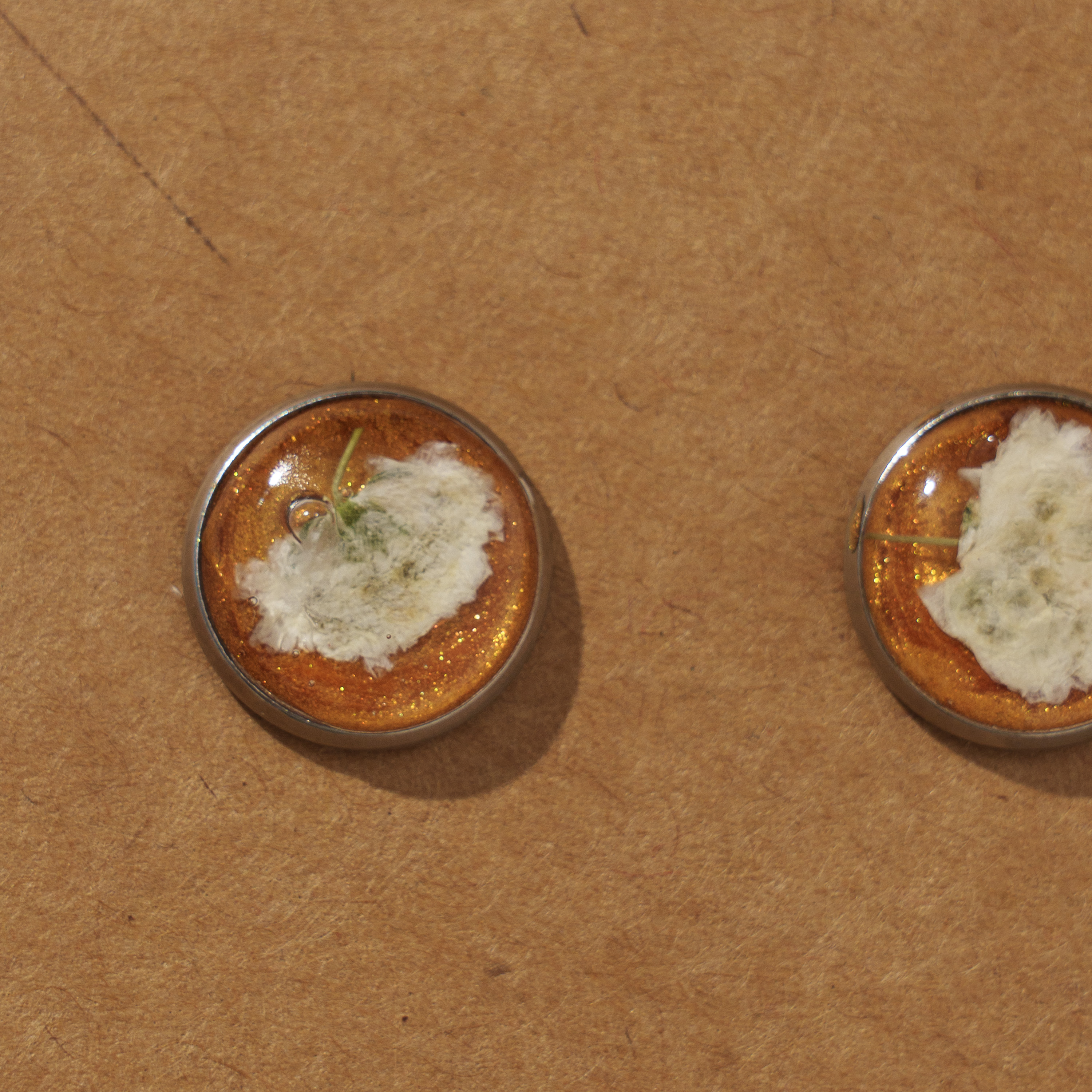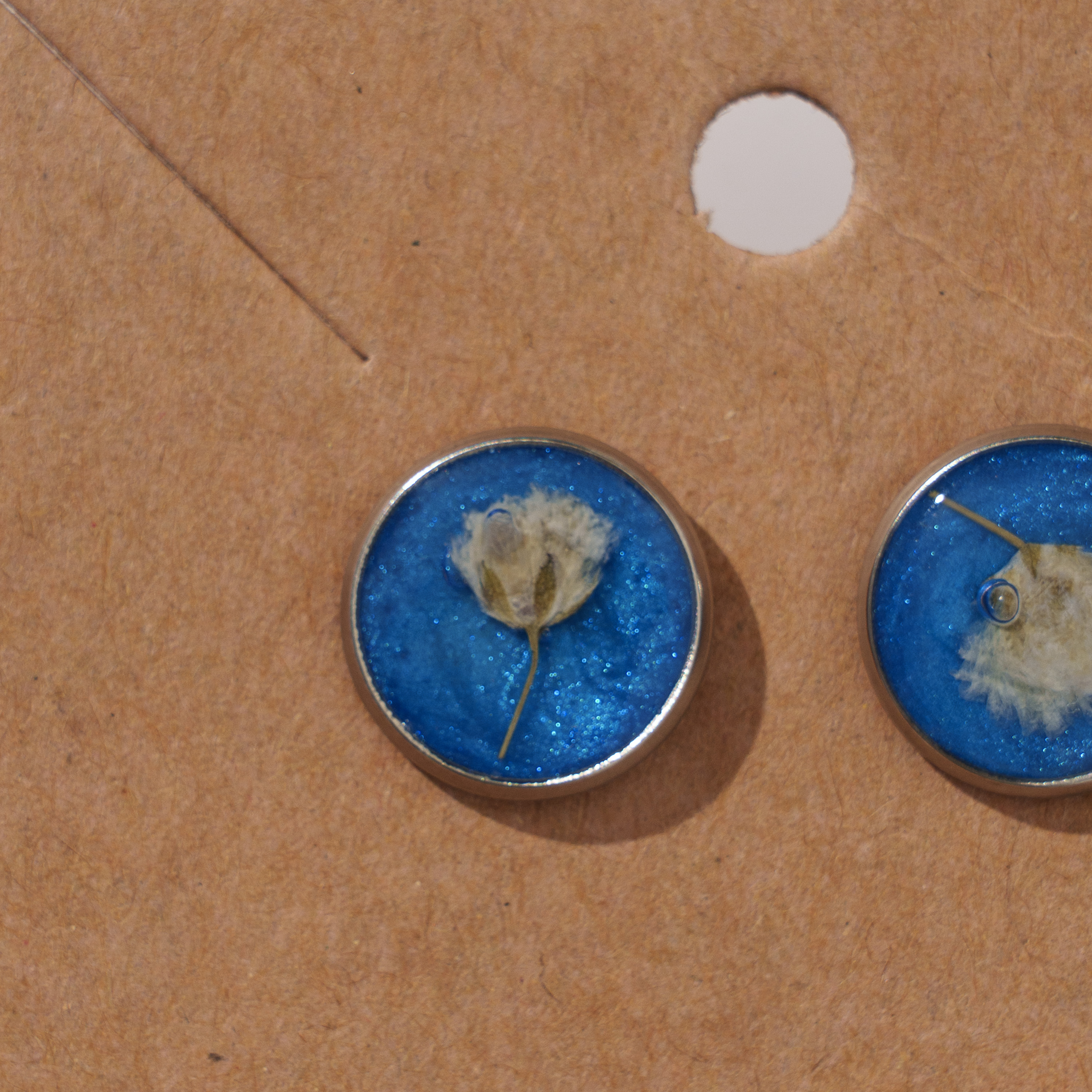 Aggiungi un tocco di natura ai tuoi look con gli orecchini "I mille segreti dei fiori". Realizzati in resina trasparente con fiori essiccati e pigmenti mica, con base in metallo, leggeri, eleganti e perfetti per ogni occasione. Realizzati artigianalmente, rappresentano un impegno per la sostenibilità e la bellezza naturale. Ideali per chi desidera un accessorio funzionale che unisca stile e raffinatezza, sono progettati per durare nel tempo e per aggiungere un tocco di eleganza alla tua routine quotidiana.