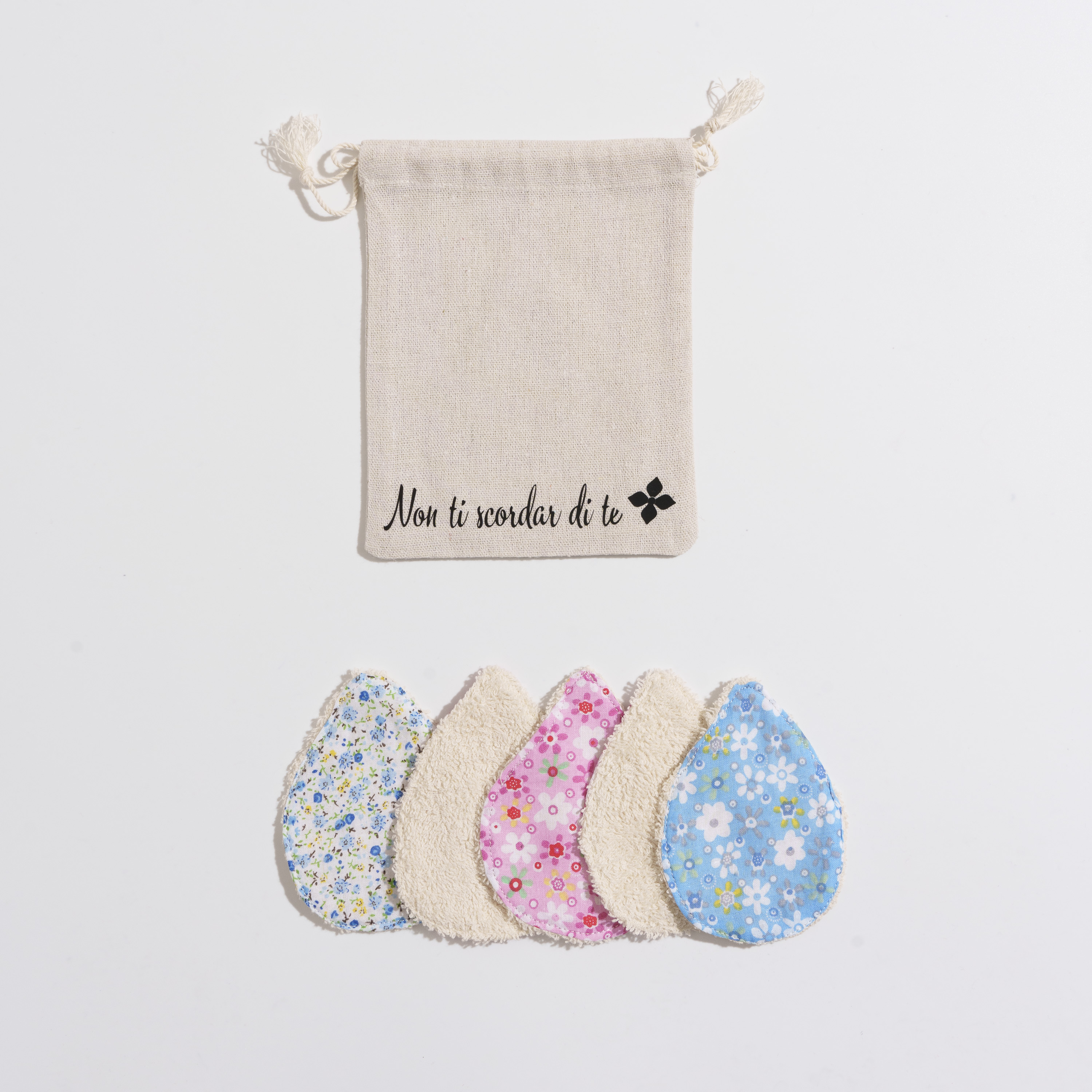 Porta un tocco di primavera nella tua routine di bellezza con il set strucco "Non ti scordar di te". Composto da 5 gocce struccanti in cotone lavabile e riutilizzabile, con sacchettino in coulisse e fantasia floreale, ideale per una cura del viso dolce e sostenibile. Realizzato artigianalmente, rappresenta un impegno per la sostenibilità e la funzionalità. Perfetto per chi desidera un accessorio funzionale che unisca stile e praticità, è progettato per durare nel tempo e per aggiungere un tocco di freschezza alla tua routine quotidiana. Un tributo alla consapevolezza ambientale e alla bellezza naturale.