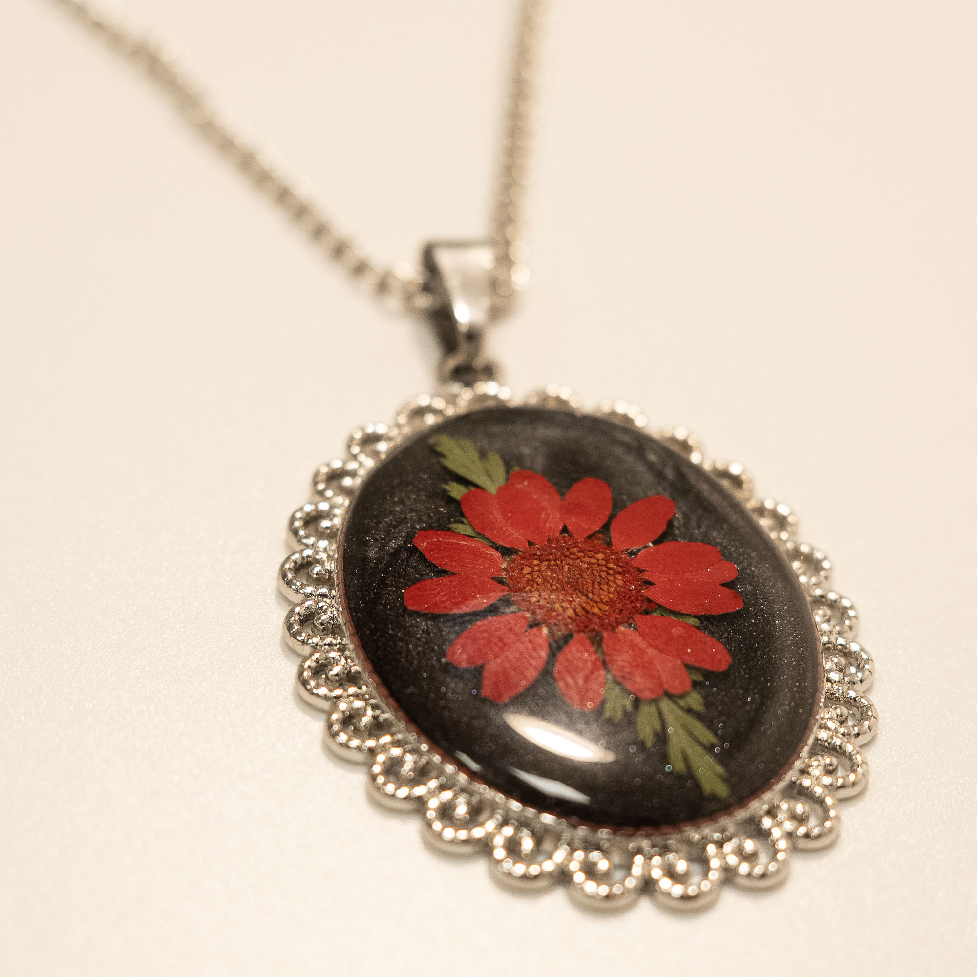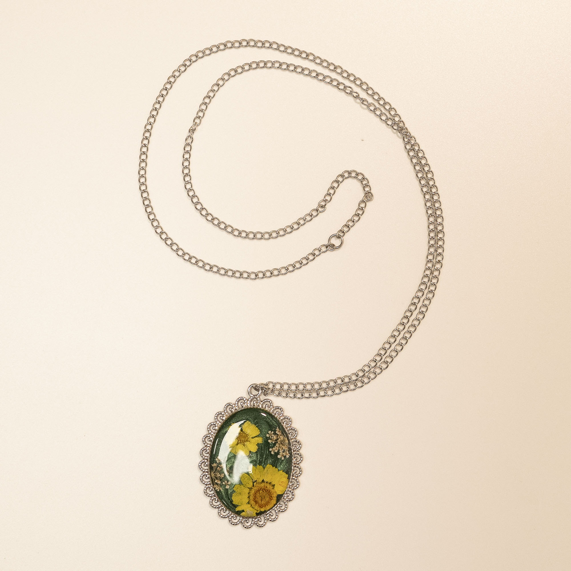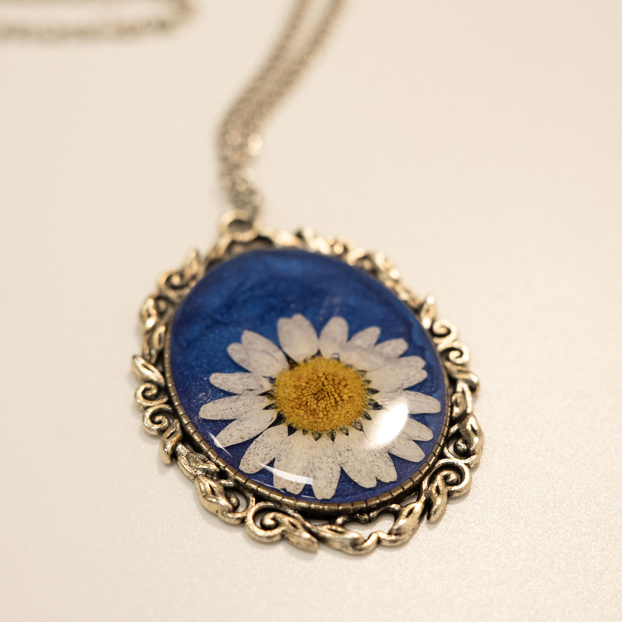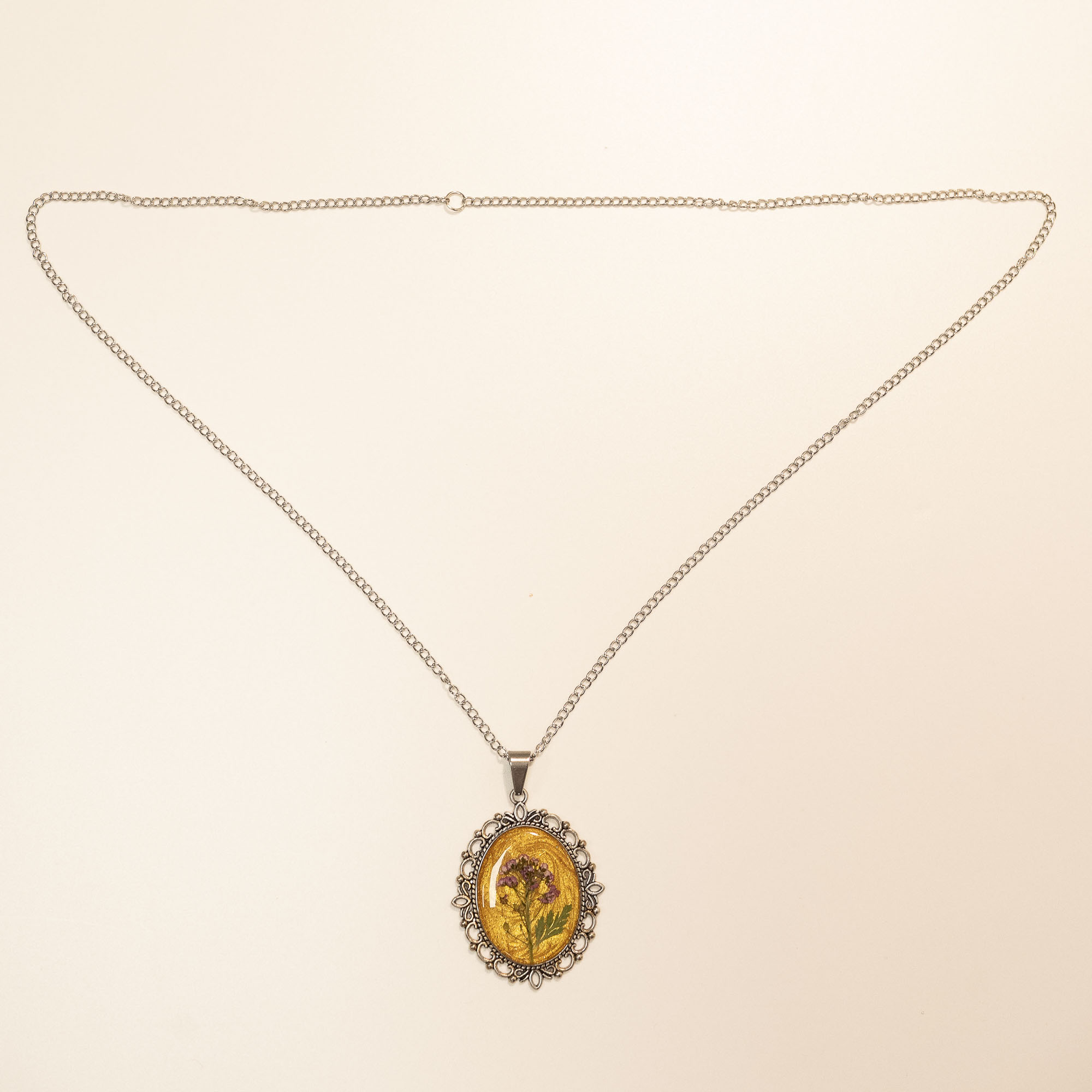 Gioiello in resina con fiori essicati e pigmenti mica, catenina in metallo e ciondoli vari, accessorio ideale per chi ama i dettagli unici e raffinati. Realizzato artigianalmente, progettato per durare nel tempo e per aggiungere un tocco di eleganza alla tua routine quotidiana.
