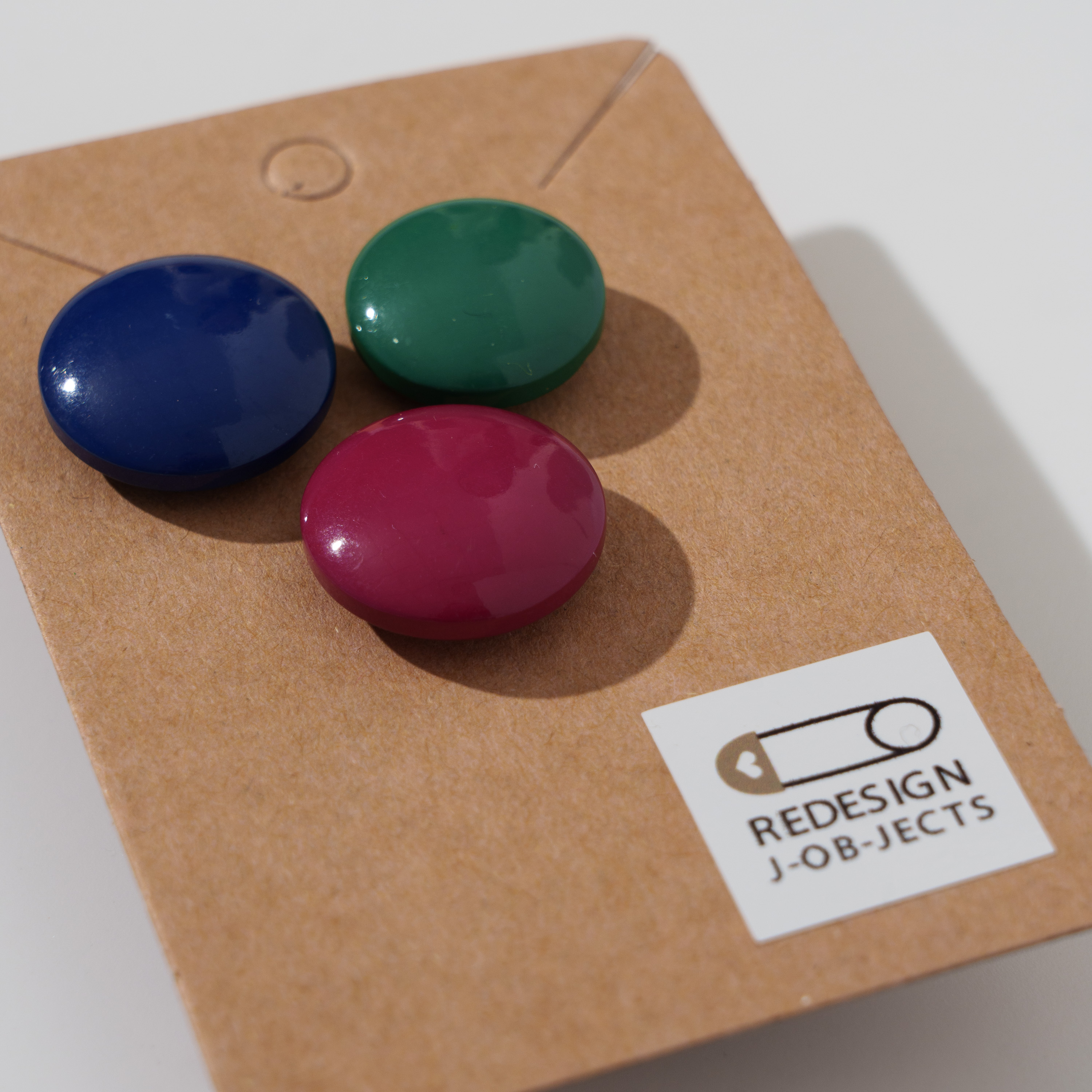 Set di 3 orecchini, realizzati artigianalmente con bottoni e con chiusura a farfalla in acciaio, perfetti per esprimere la tua personalità e aggiungere colore ai tuoi outfit.