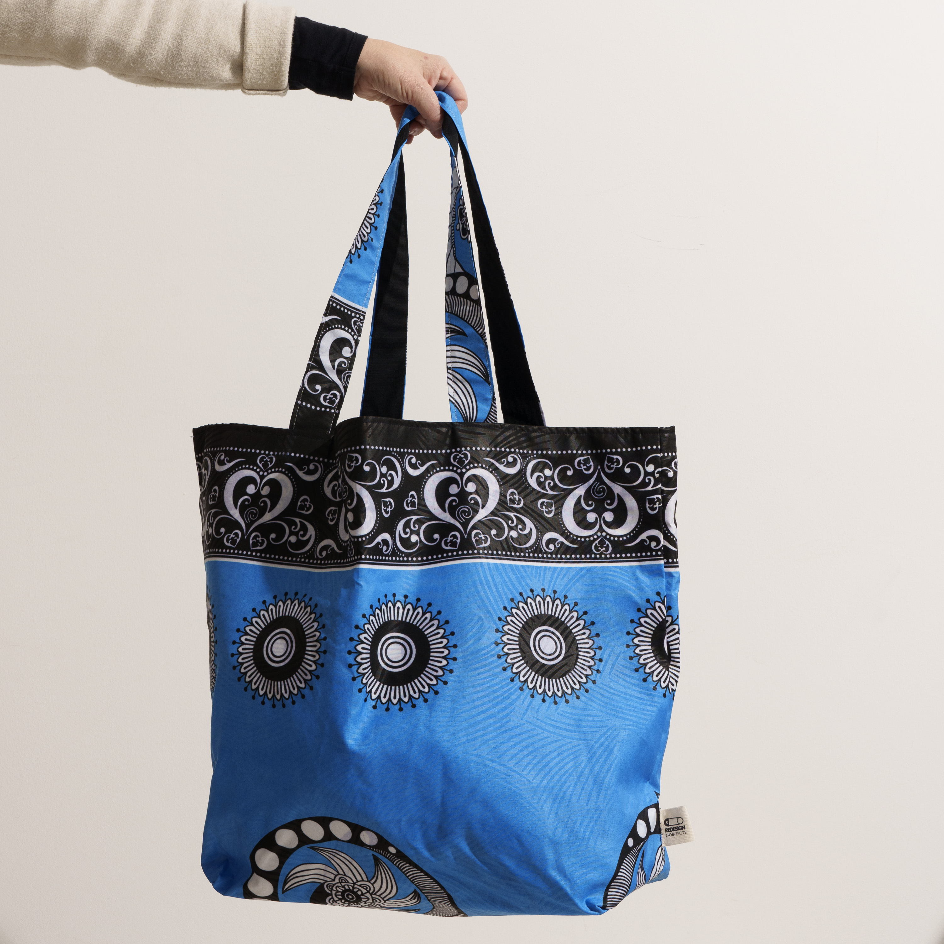 Borsa in tessuto di cotone, completamente lavabile. Interno foderato.