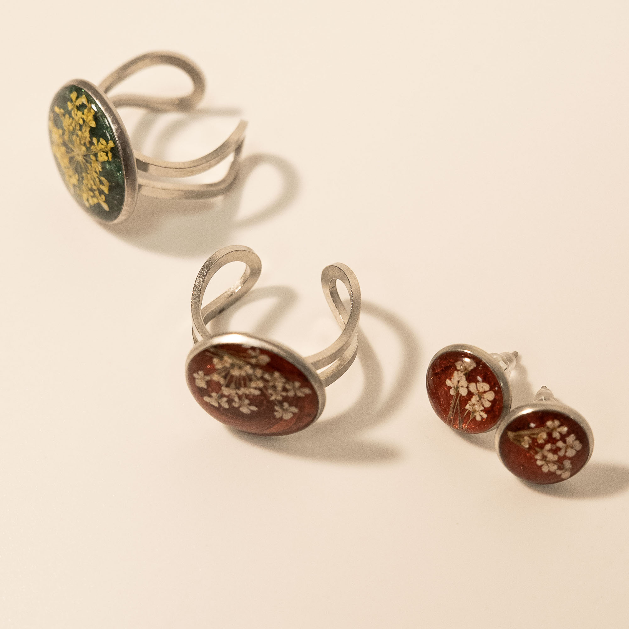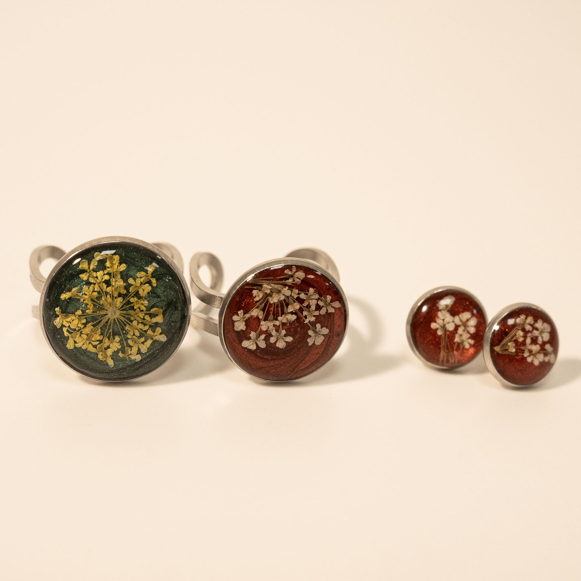 Parure di anelli e orecchini con composizioni miste, come da foto.